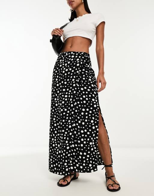 Monki - Midi rok met overslag aan de voorkant in zwart met witte stippenprint
