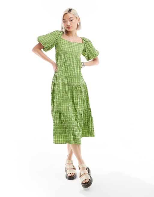 Monki - Midi zonne-jurk met stroken, open achterkant en grote ruit in groen