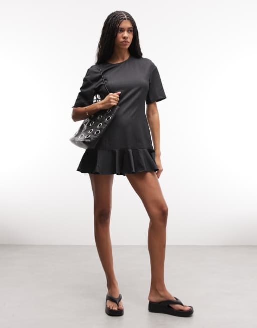Monki - Mini-jurk met ruches aan de zoom in donkergrijs