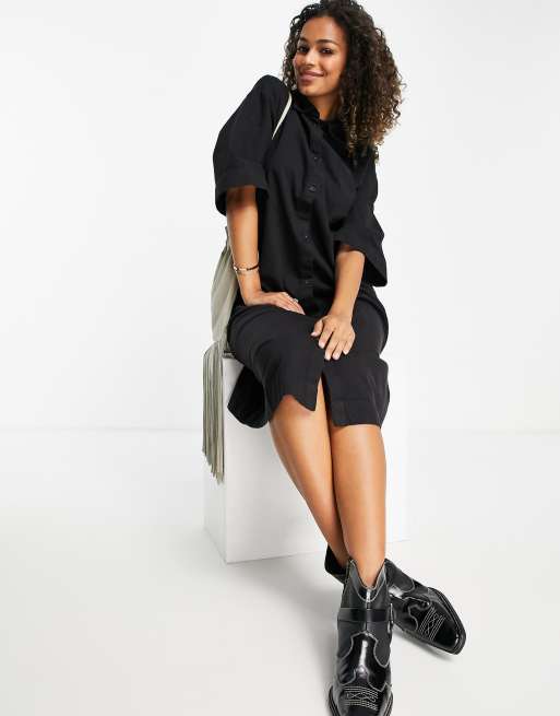 Monki - Misha - Katoenen midi denim overhemdjurk in zwart - BLACK