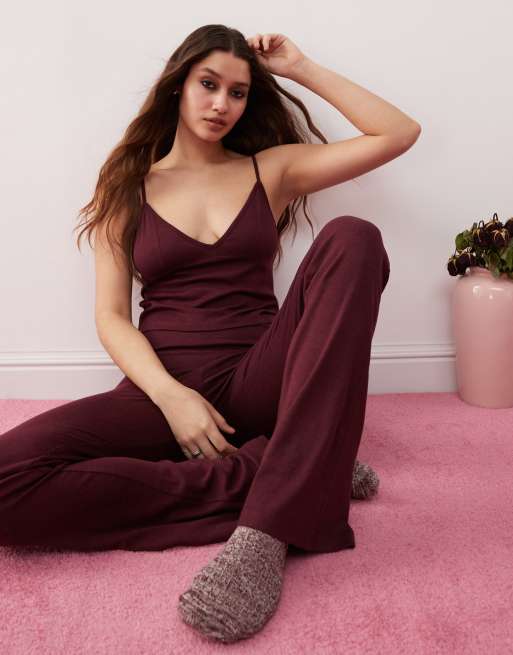 Monki - Mix en match - Flared pyjama van jersey in bordeauxrood