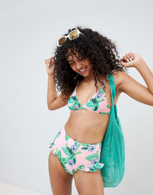Monki - Mix en match triangel-bikini met ruche in bloemenprint