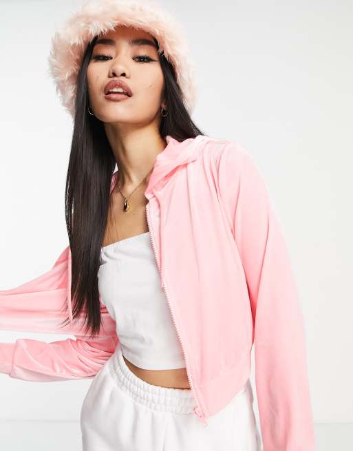 Monki - Nomi - Polyester fluwelen zip up hoodie co-ord in roze - BPINK