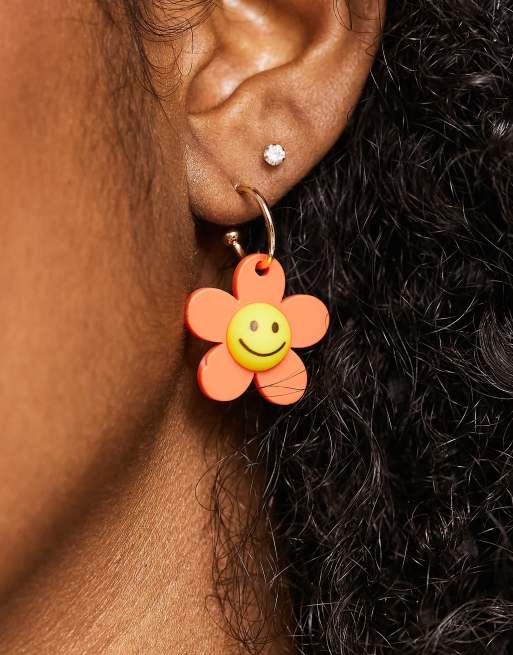 Monki - Oorbellen met hangertje met bloem en smiley in rood