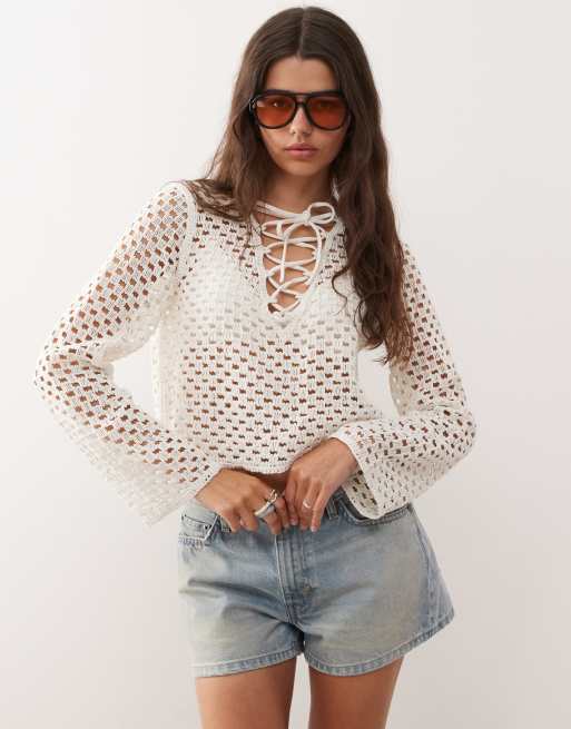 Monki - Open gehaakte tanktop in wit