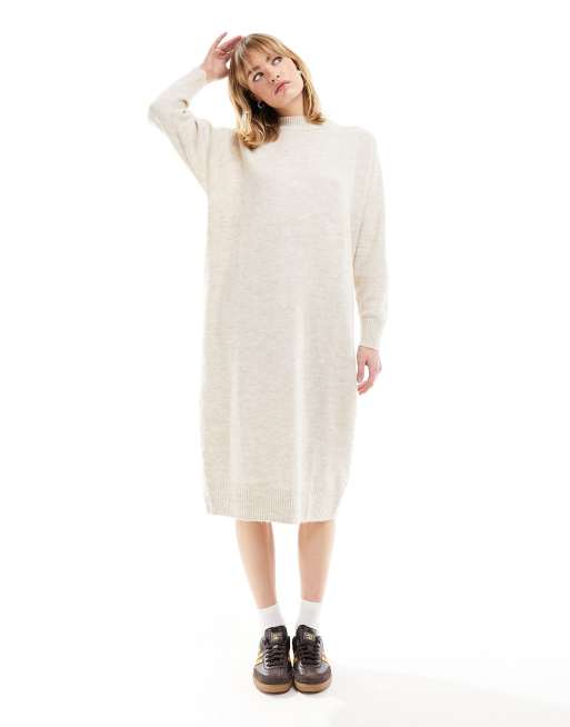Monki - Oversized gebreide midi jurk met lange mouwen in gebroken wit