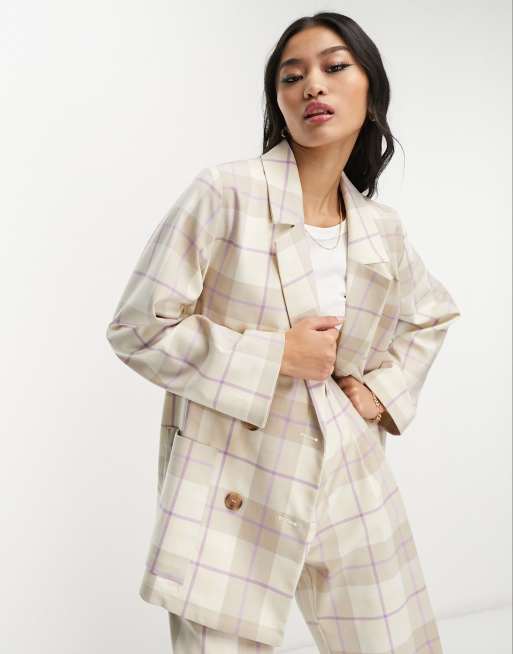 Monki - Oversized geruite blazer in beige, deel van co-ord set