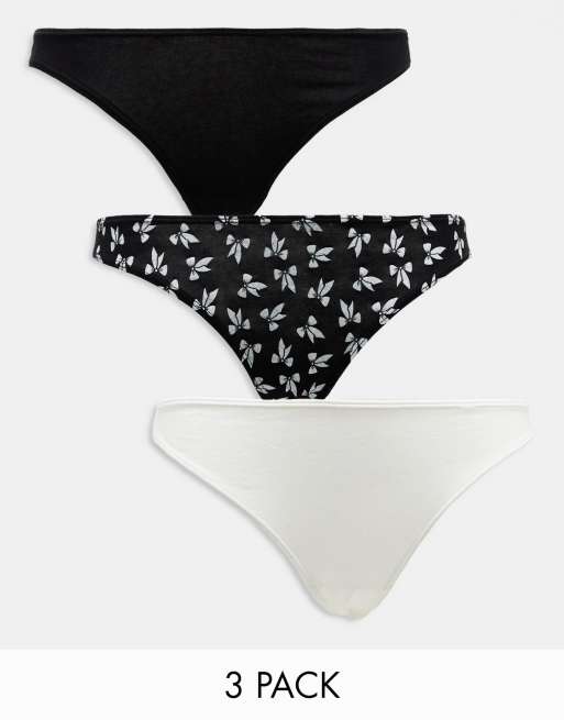 Monki - Penny - Set van 3 onderbroeken in zwart en wit en met print