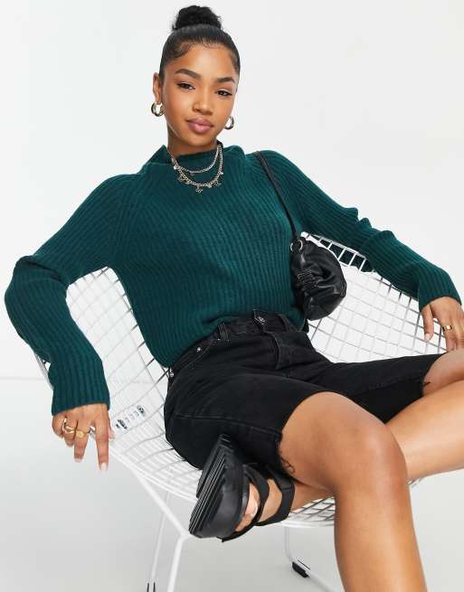 Monki - Polyester ribtrui in donkergroen - DGREEN