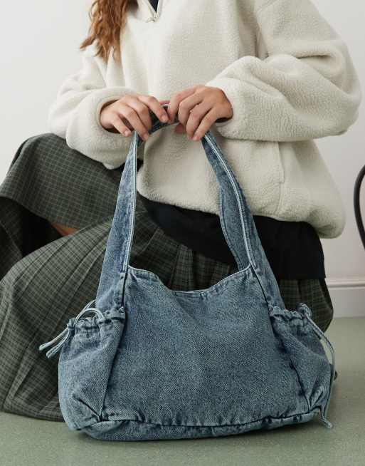 Monki - Ruime tote tas met gestrikte zakken in blauw denim