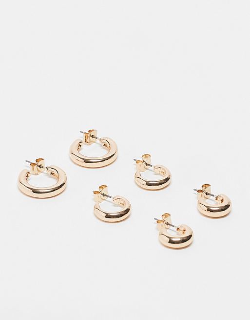 Monki - Set van 3 paar buisvormige oorringen in goud