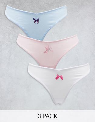 Monki - Set van 3 strings met borduurwerk in roze, blauw en wit multi