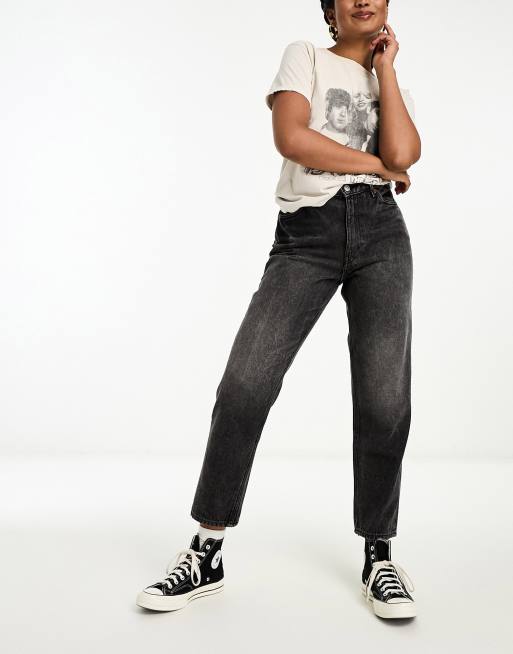 Monki - Taki - Toelopende jeans met met hoge taille en cropped pijpen in donker galaxy zwart