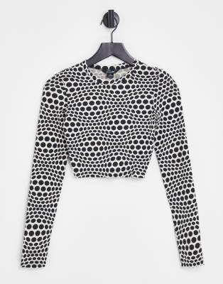 Monki - Top met open achterkant en lange mouwen in stippenprint