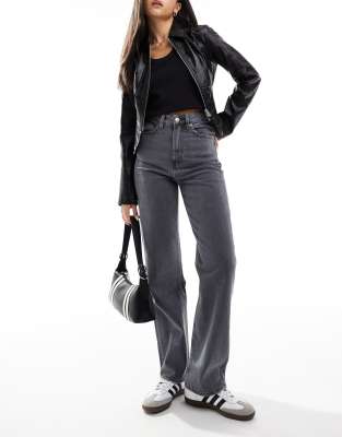 Monki - Zami - Jeans met hoge taille en rechte pijpen in grijs