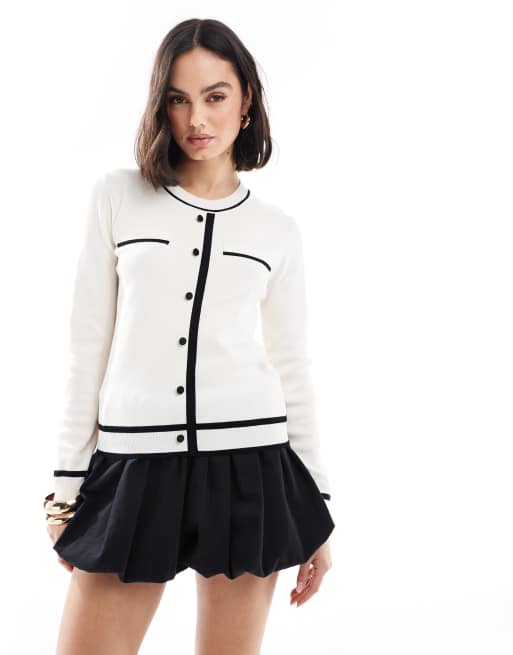 Morgan - Gebreid vest met knoopsluiting en contrasterende afwerking in crème