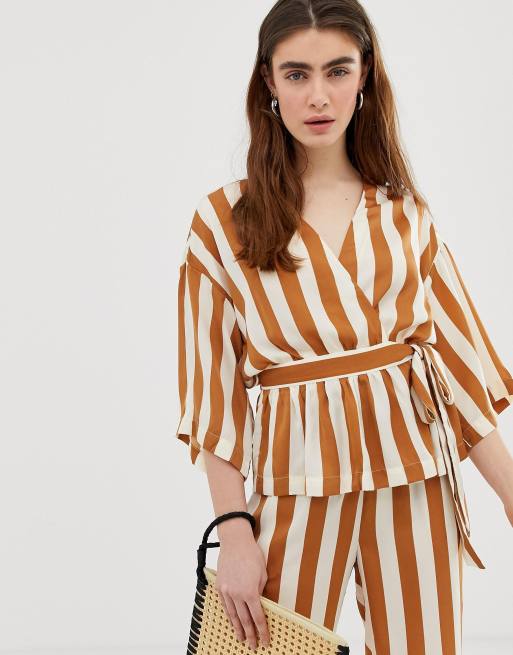 Moss Copenhagen - Top met overslag aan de voorkant in satijn met streep, combi-set