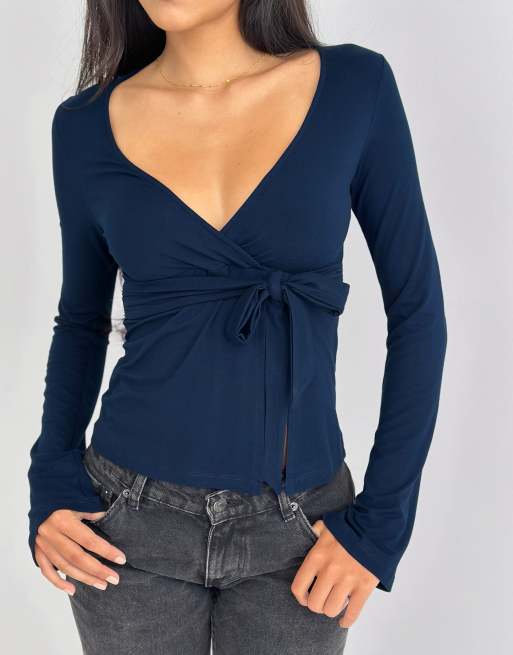 Motel - Lamae - Top met overslagdetail en lange mouwen in marineblauw