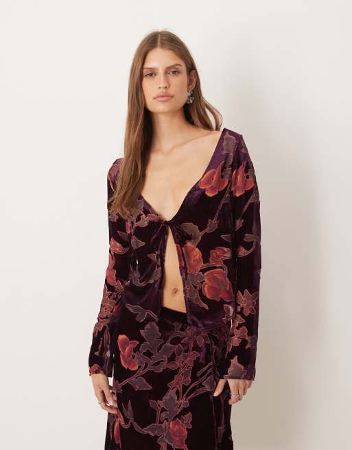 Motel - Sukita - Top met lange mouwen in bordeauxrode bloemenprint
