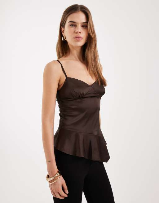 Motel - Turuti - Satijnen camitop met ruches in donkerbruin