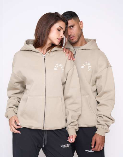 Multiply Apparel - Penalty - Oversized hoodie met rits in seneca steen