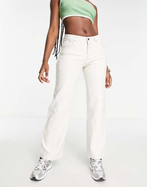 Muubaa - Broek van leer met wijde pijpen en hoge taille in eierschaalkleur