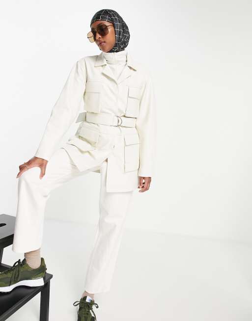 Muubaa - Chloe - Leren utility-jack met lange pasvorm en riem in crème