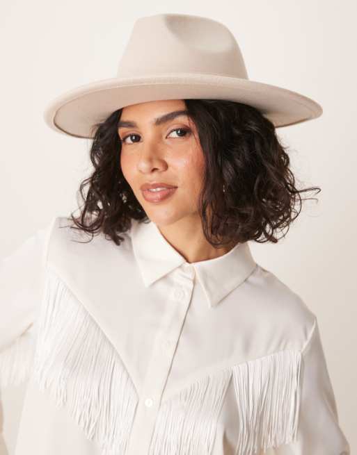 My Accessories - Fedorahoed van imitatiesuède in ecru