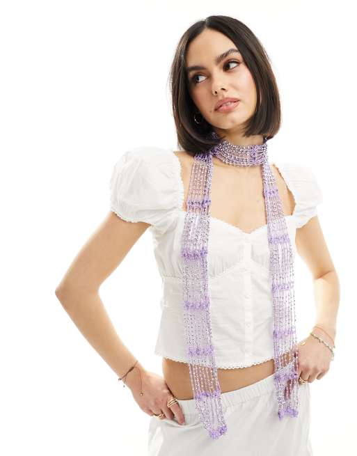My Accessories - Gehaakte skinny sjaal met kralen in paars
