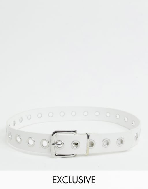 My Accessories London Exclusive - Heup- en tailleriem in wit met zilverkleurige oogjes