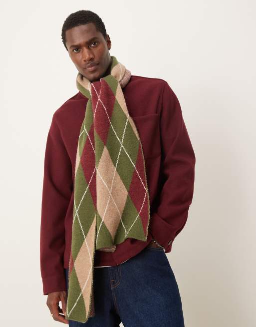 My Accessories - Man - Sjaal met argylepatroon in kaki, taupe en rood