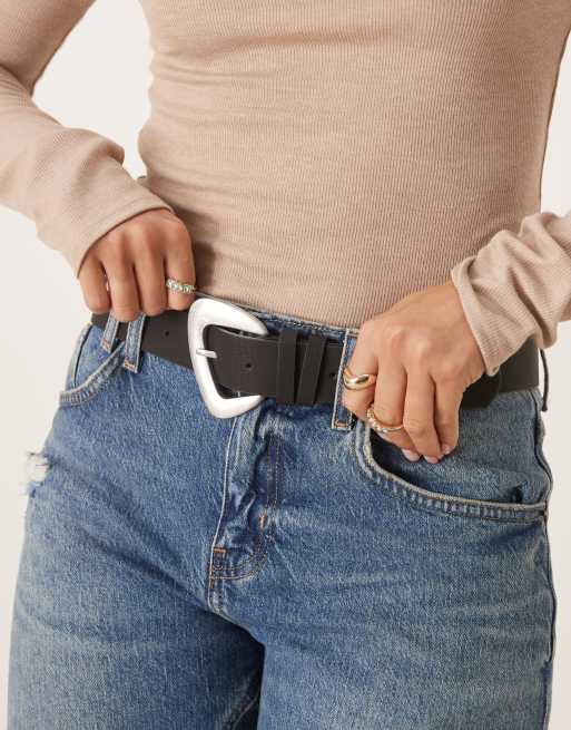 My Accessories - Riem in zwart met asymmetrische gesp in geborsteld zilver