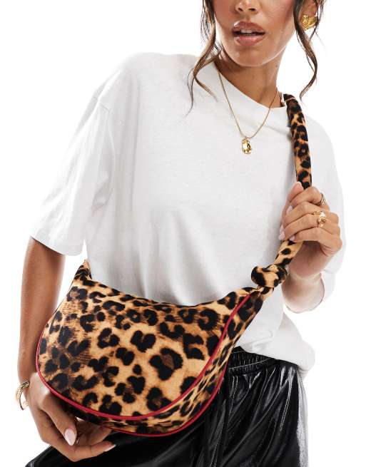 My Accessories - Slingtas van nylon met contrasterende biezen in luipaardprint