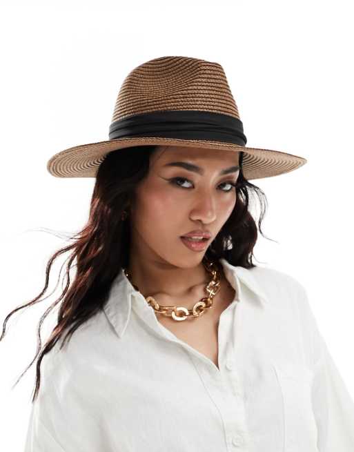 My Accessories - Verstelbare fedorahoed van stro in bruin