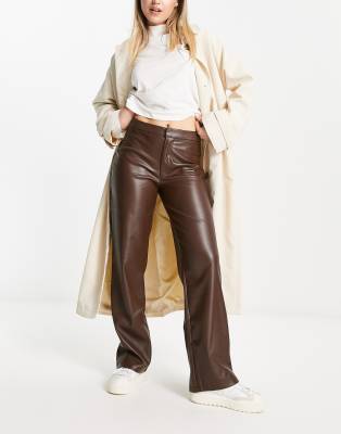 NA-KD - Broek van imitatieleer met rechte pijpen in bruin