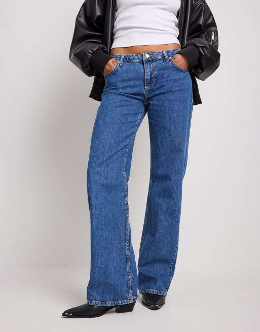 NA-KD - Jeans met rechte pijpen en lage taille in middenblauw