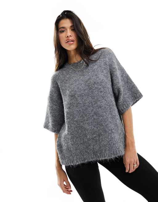 NA-KD x Moa Mattsson - Gebreid T-shirt met korte mouwen in grijs