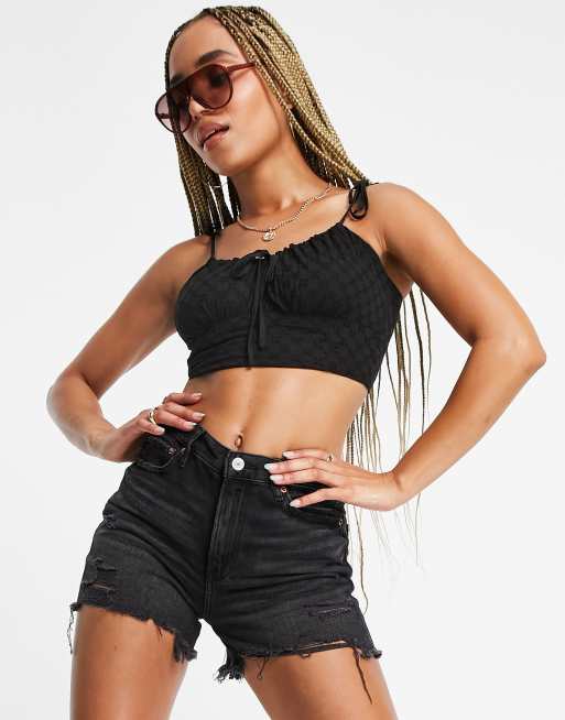 NA-KD x Sanne de Kramer - Crop cami top met strikdetail in zwart