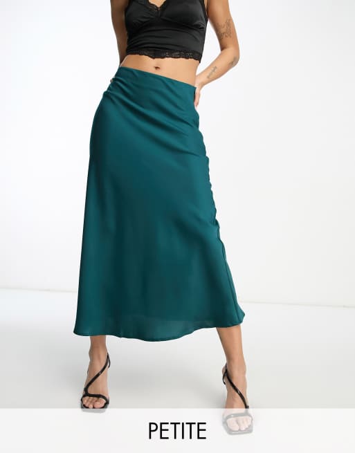 NaaNaa Petite - Schuingesneden satijnen midirok in groenblauw