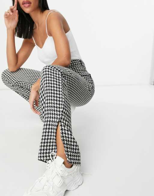 NaaNaa - Elegante broek met hoge taille en split aan de zoom in bruine pied-de-poule