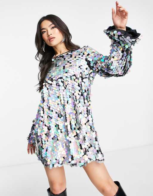 NaaNaa - Premium mini-jurk met pailletten en lange mouwen in zilver