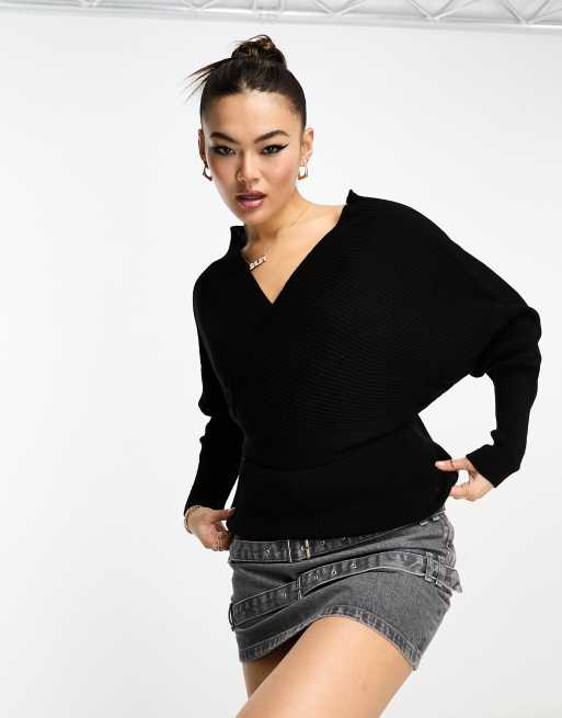NaaNaa - Trui met overgeslagen vleermuismouwen in zwart