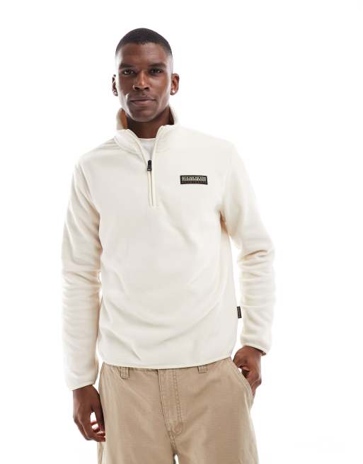 Napapijri - Iaato - Fleece met logo en 1/4 rits in gebroken wit