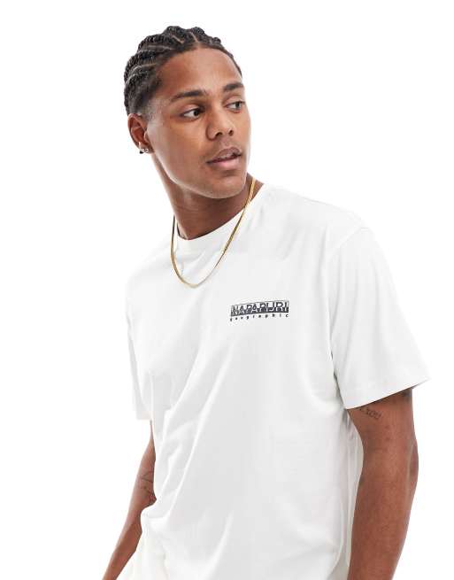 Napapijri - Linth - T-shirt met print op de rug in gebroken wit