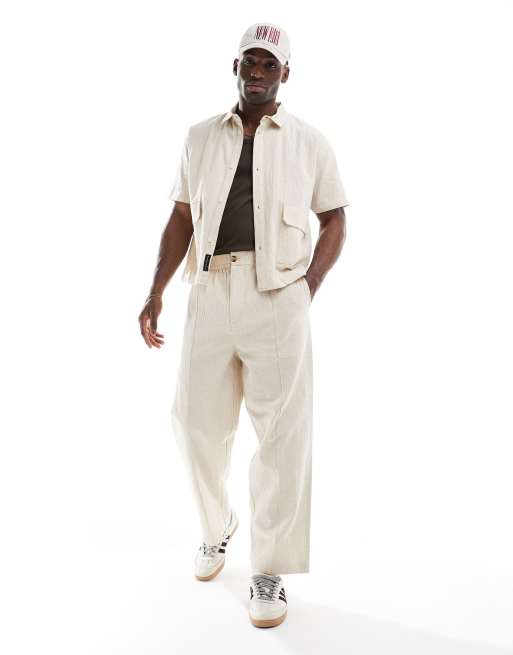 Native Youth - Ruimvallende broek van linnenmix met borduursels in crème, deel van co-ord set