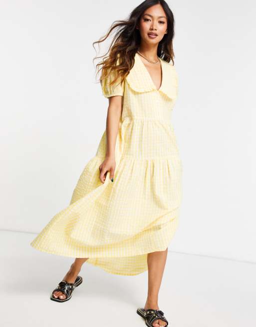 Neon Rose - Midi smockjurk met oversized kraagje en strokenrok in gingham ruit