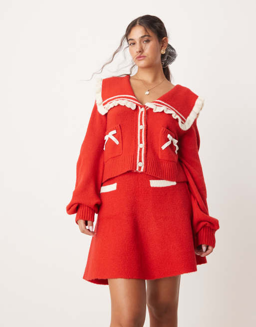 Neon Rose - Vest met ruches en kraag in rood, deel van co-ord set