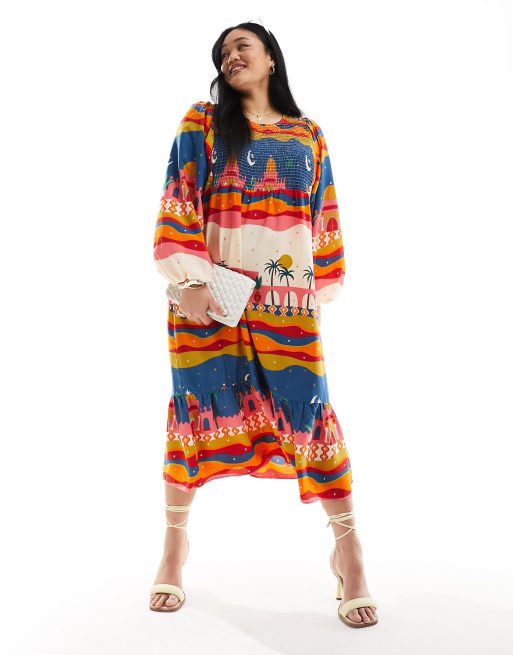Never Fully Dressed Plus - Midaxi jurk met volant en paradijsprint