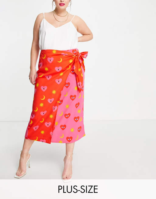 Never Fully Dressed Plus - Midi-rok met contrasterende overslag in roze met rood