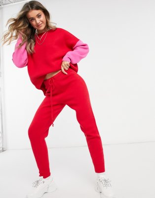 Never Fully Dressed - Gebreide joggingbroek met gestrikte taille in rood, deel van co-ord set